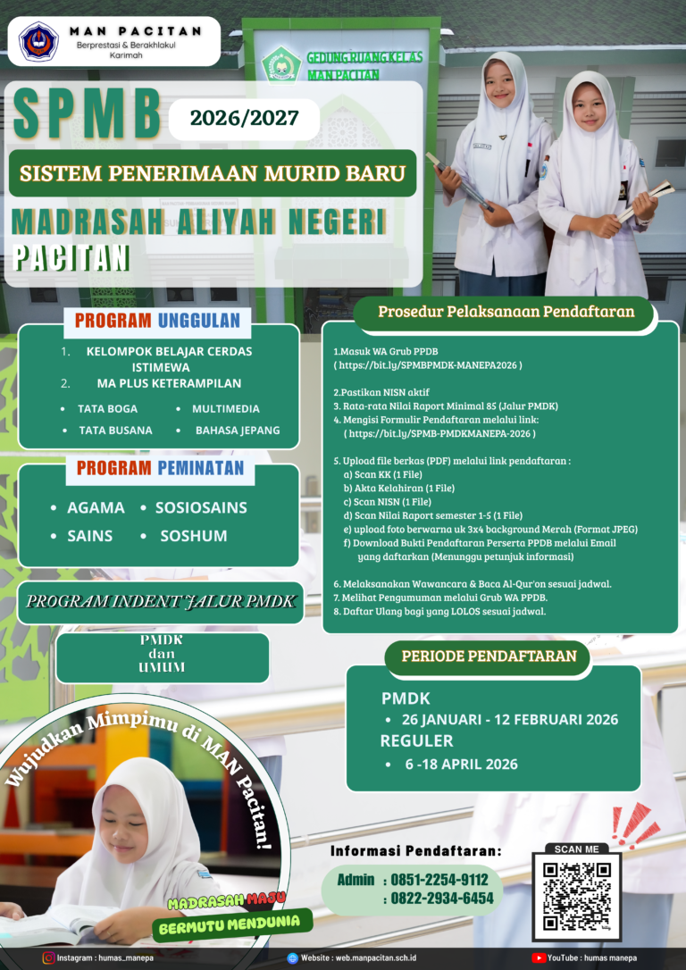 Humas MANEPA || SPMB MAN Pacitan 2026/2027 Telah Resmi Dibuka!
